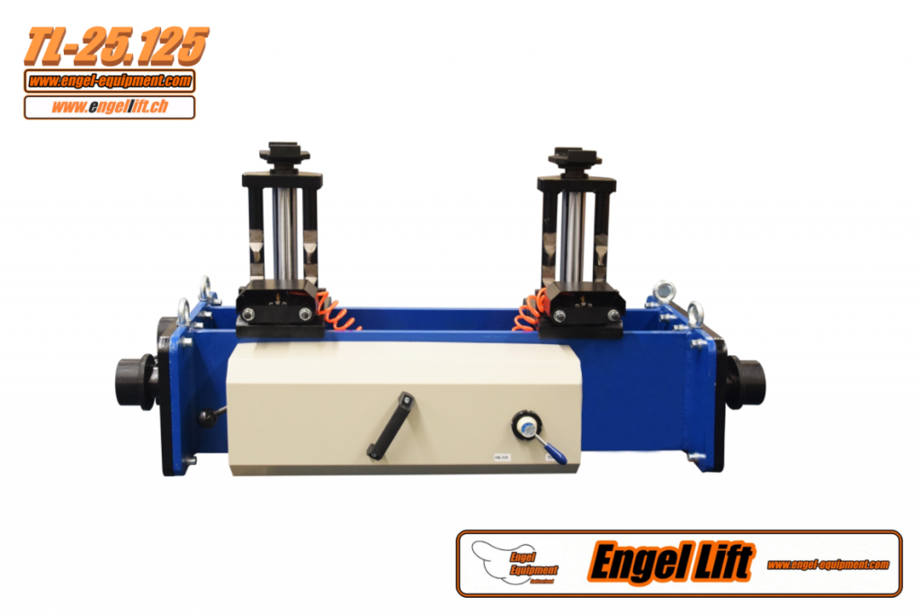 Schwerlast Achsabheber mit 12, 5 Ton Hubkapazität dieses Modell ist für der Engellift TL-25.9 LKW Halbscheren Y-Tech Hebebühne hergestellt, aber kann auch Einzel in einen Schmiergruben installiert werden, bracht dann aber ein Tragprofil wo er ein läuft. Der TL-25.125 wird Pneumatisch betrieben, braucht lediglich 6 bis 8 Bar Luftdruck. ausgerüstet mit zusätzliche Abstützsicherung die automatisch mitgenommen wird während der Hubvorgang, gewährt ein extra Sicherheit.