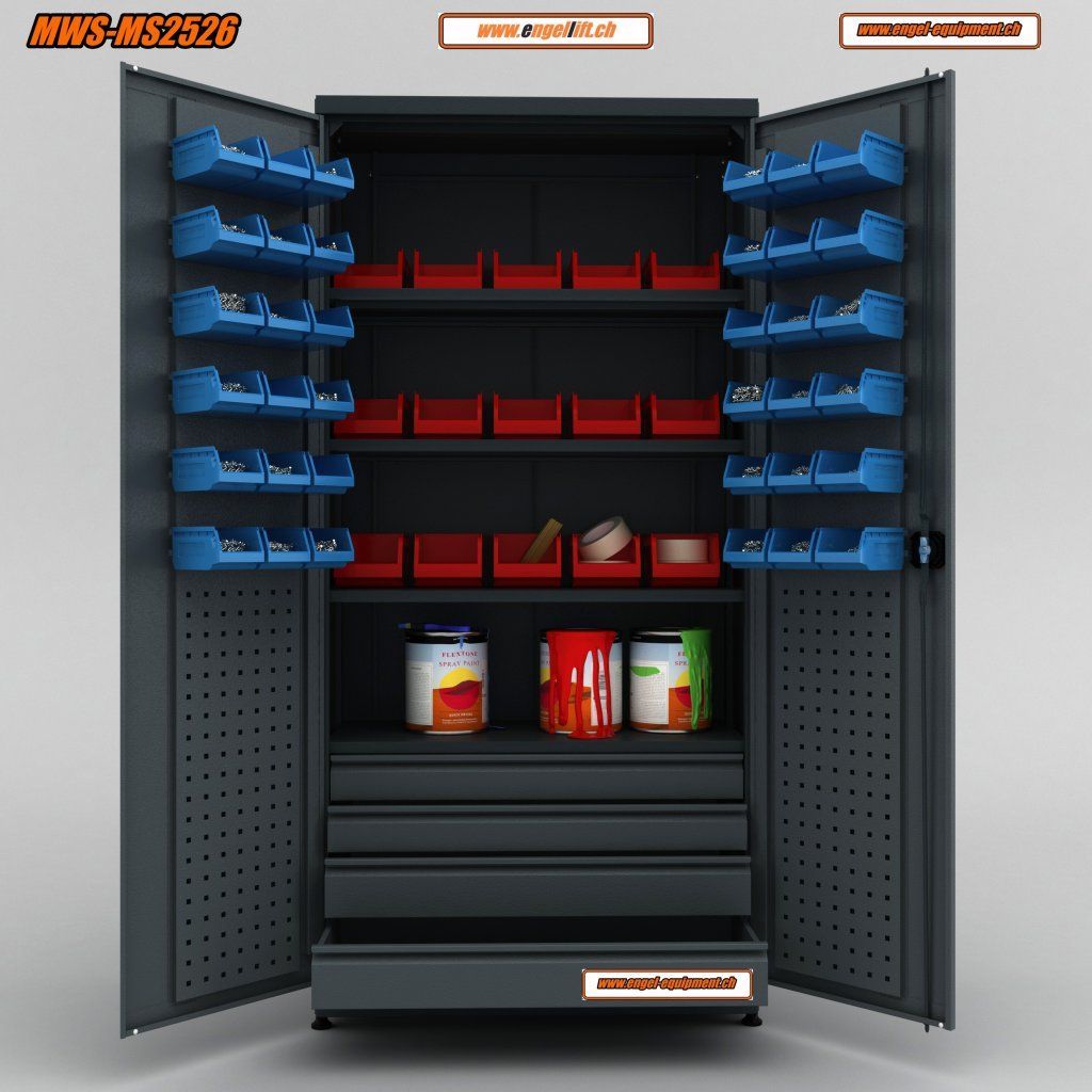 MMWS-MS2427 MATERIAL SCHRANK MIT 4 TABLARE, 4 SCHUBLADE + LOCHBLECH TÜREN & WÄNDE
