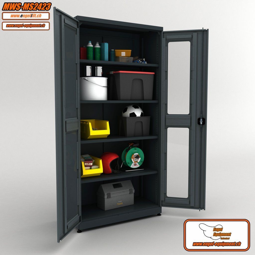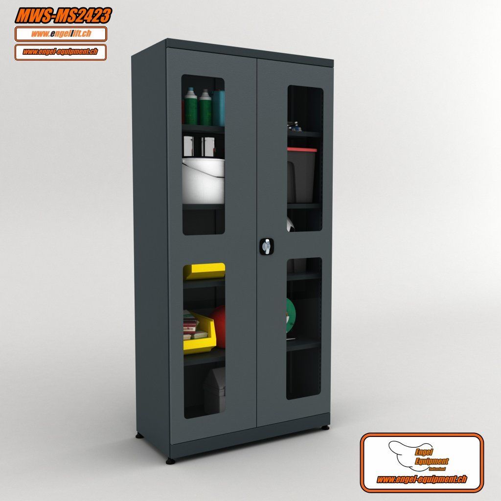MWS-MS2423 EINFACHE MATERIAL SCHRANK MIT 4 TABLARE MIT DURCHSICHTTÜREN