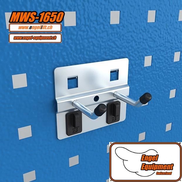 - Der U-förmige Haken dient zum Aufhängen verschiedener Gegenstände mit Griffen wie Hammer, grosse Zangen, Keil usw.