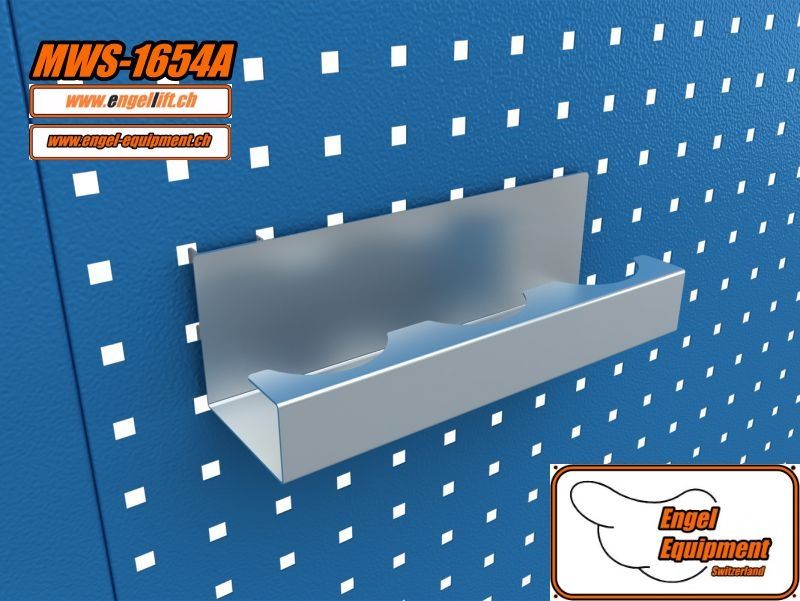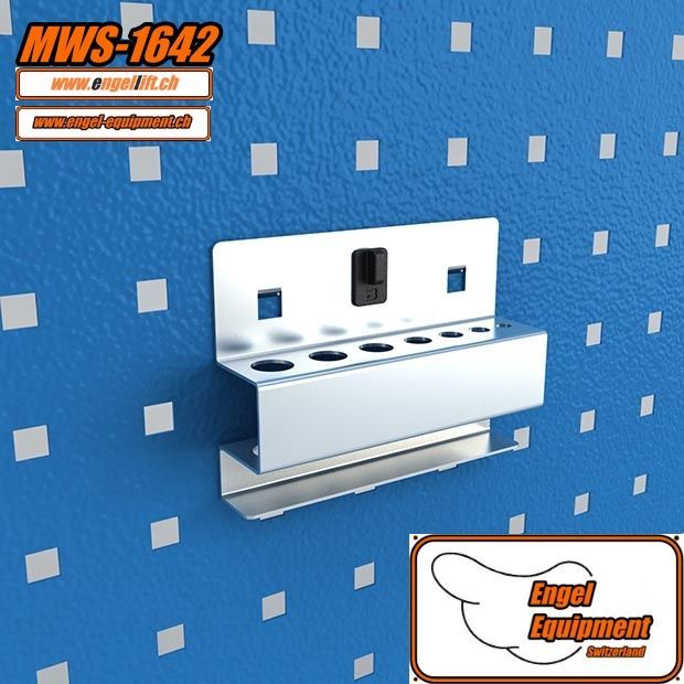 - Es dient zum Aufhängen von Schraubenziehern jeglicher Art an einem Lochblechwand.