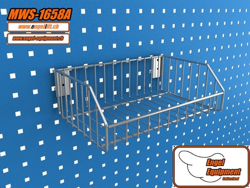- Wird mit Kunststoffklammern an der Lochblechwand befestigt.