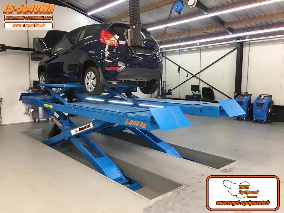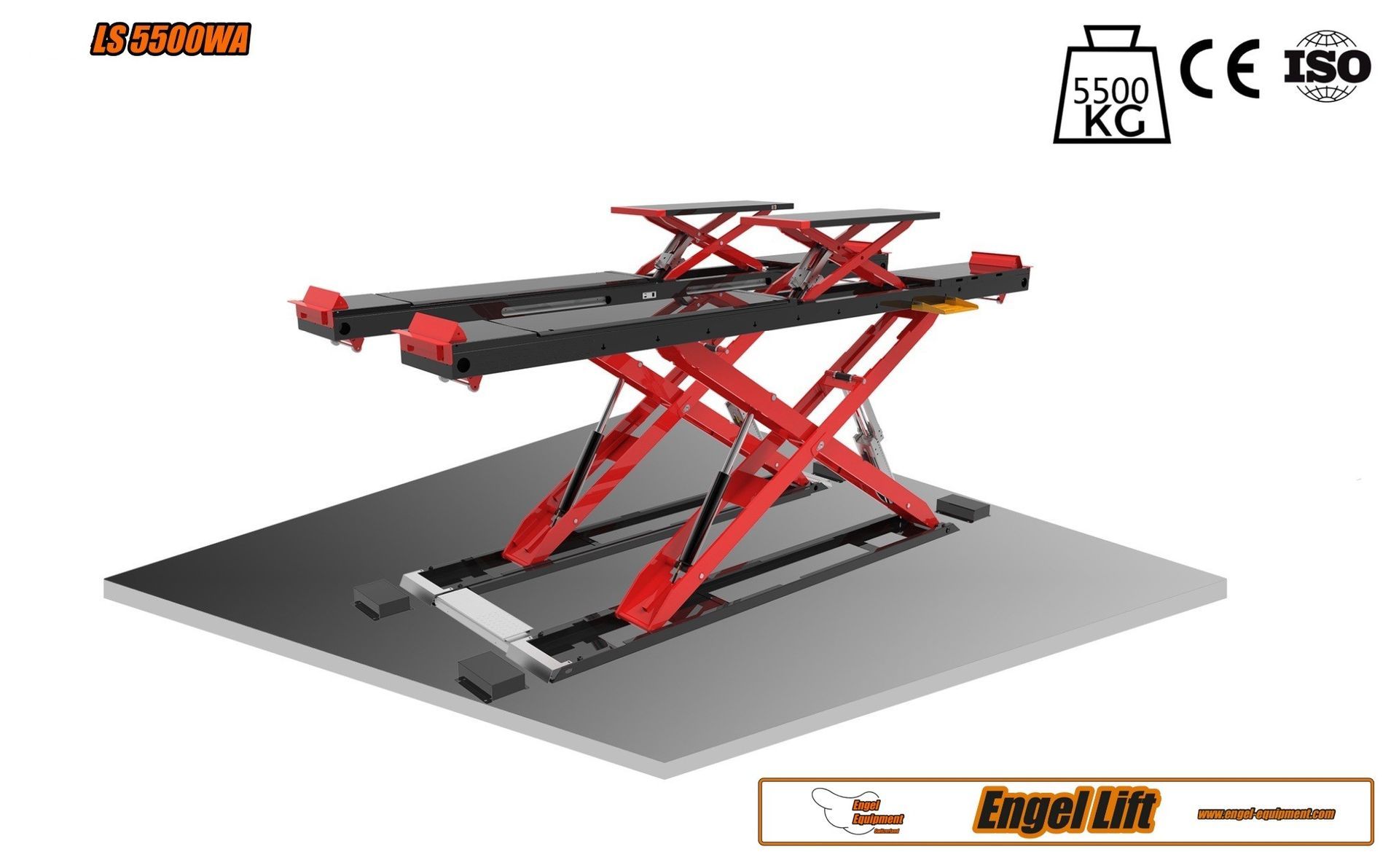 Engellift LS-5040LP; Lowprofile Scheren hebebühne (5.000kg.) mit Radfrei Hub -& Achsvermessung für Bodenaufbau.