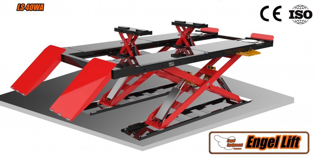 Engellift LS-40WA: Lowprofile Scherenhebebühne mit Achsabheber und Lenkgeometrie (Achsvermessung) Plattform.