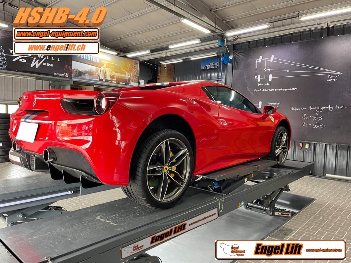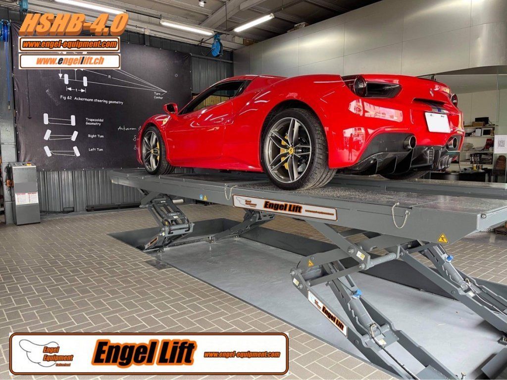 Engellift HSHB-4.0; Halbscheren Hebebühne (Heringbone Bauart), Semi-Scherenhebebühne (4.000kg.) Radfreihub System mit Achsvermessung