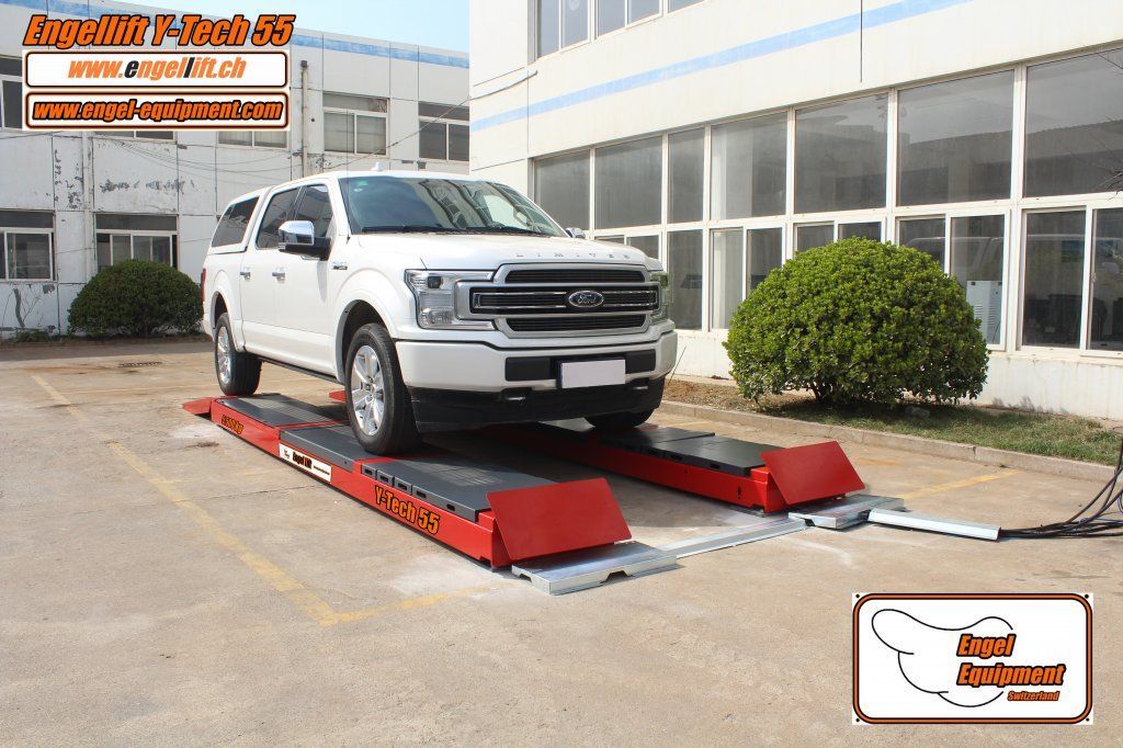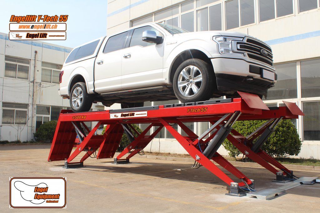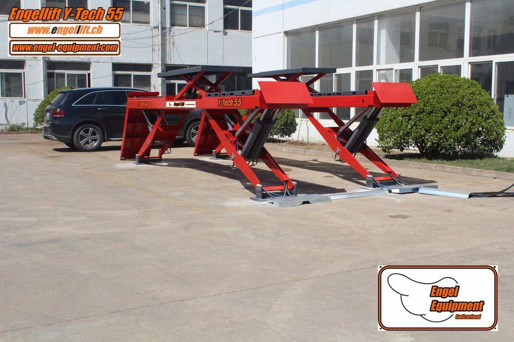 Engellift Y-Tech 55: Halb-scheren Y-Tech Hebebühne , Semi-Scherenhebebühne (5.500kg.) Radfreihub System mit Lenkgeometrie (Achsvermessung) Plattform.