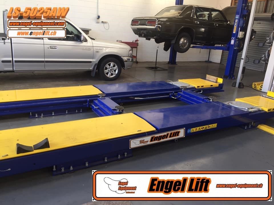 Engellift LS-5040LP; Lowprofile Scherenhebebühne (5.000kg.) mit Radfrei Hub sytsem & Achsvermessung Plattform.