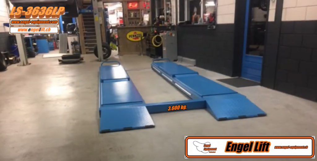 Engellift LS-3636LP; Lowprofile Scherenhebebühne (3.600kg.) mit Radfrei Hubsystem & Achsvermessung Plattform.