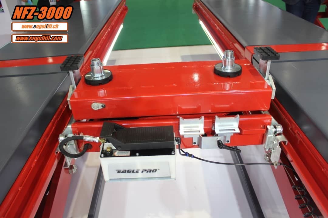 Diesen Scheren sowie Bodenrahmen sind aus überdurchschnittlich Dickes Stahlmaterial gefertigt, zusätzlich ist das Radfrei Hubplattform von einer Seite ausziehbar, und lässt sich von der Standard 1.600mm maximal verlängern bis 2.300 mm, bei gleichbleibende Traglast von 4.000 kg., genial für Lieferwagen, Bussen, Wohnmobile, und leichtere Nutzfahrzeugen