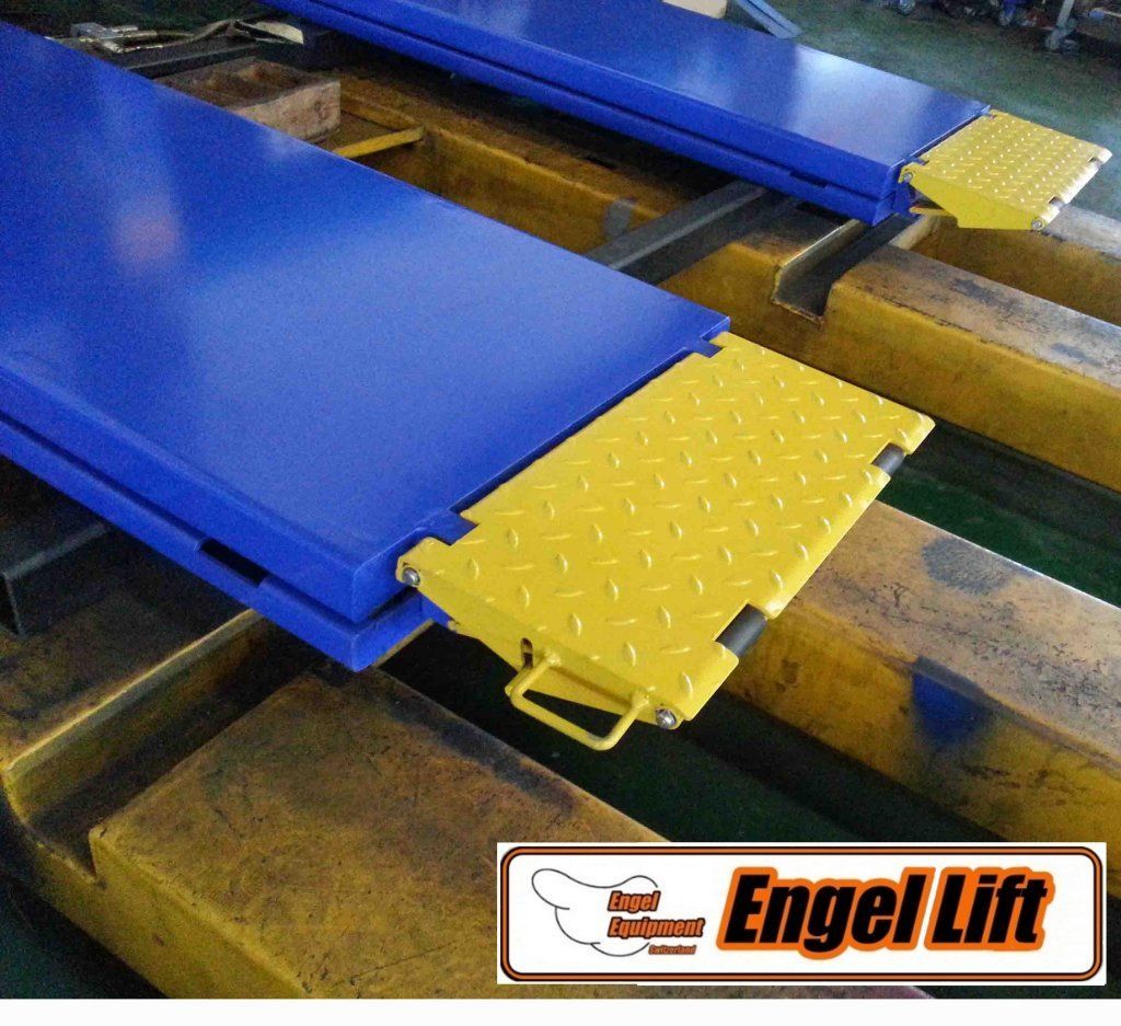 diese komplette scheren wird schön eingelassen im Bodenrahmen und gewährt ein stabile geleidung während der Hubvorgang, Fazit ein sehr, sehr stabile scheren hebebühne und trotzdem sehr Bodenniedig , eigene Bauhöhe ist nur 140 mm., und Sie haben der Wahl aus zwei verschiedene Arten von Auffahrrampen.