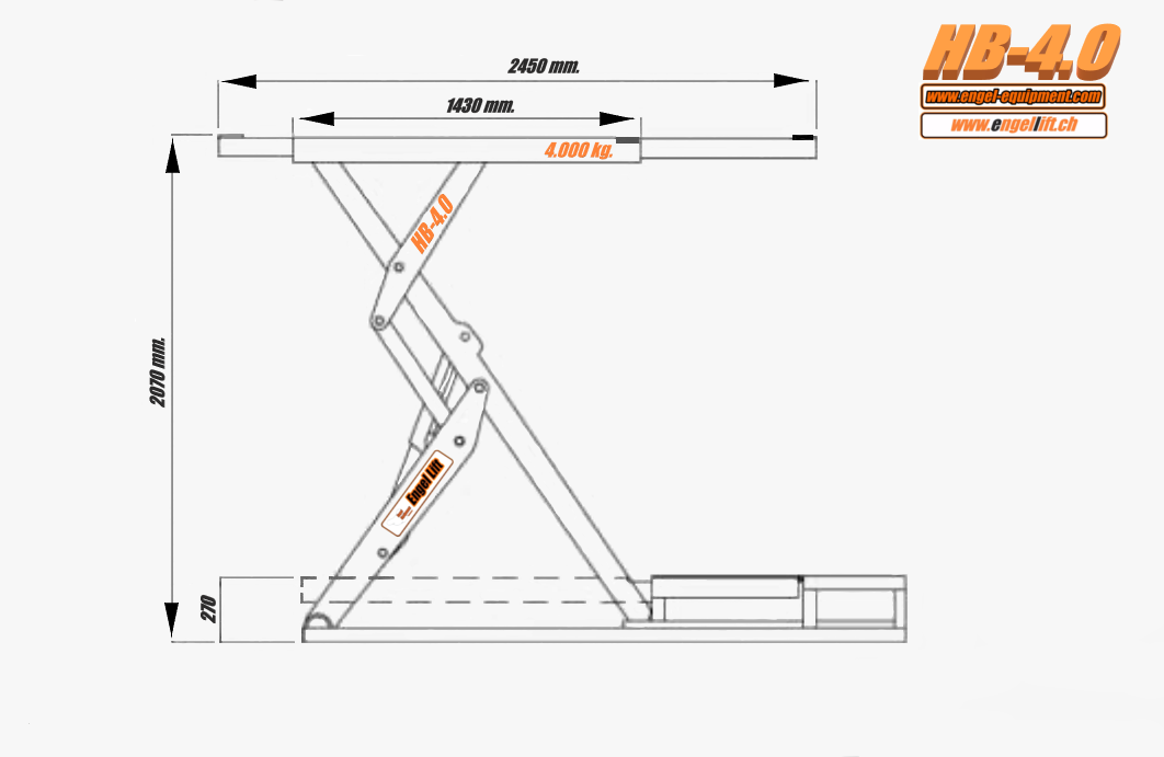 Engellift HB-4.0: Heavy Duty Scheren Hebebühnen,"Heringbone Bauart" -4.000kg .