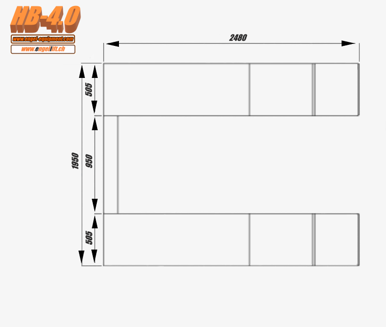 - Plattformlänge: 1.375mm. + 2x 125mm Gummibelegter Hubaufnahme, wovon einer zusätzlich 296mm Ausziehbar