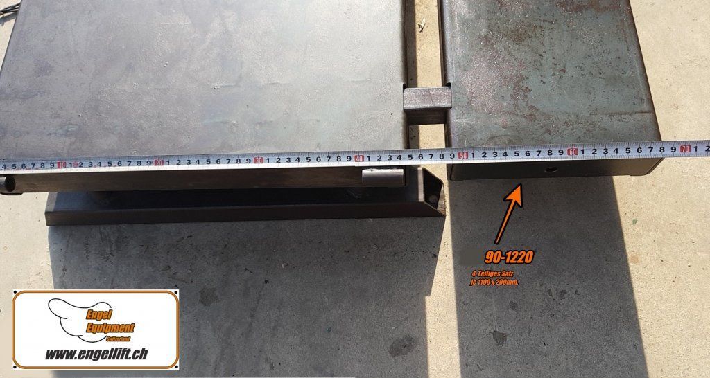 Versehen von ein separates hydraulischsystem mit bedienungpult, daher geeignet nür auf der Boden, Spezielles Plattform mit 2 verschiebaren zusatz Elementen mit feste klappbare Aufframpen