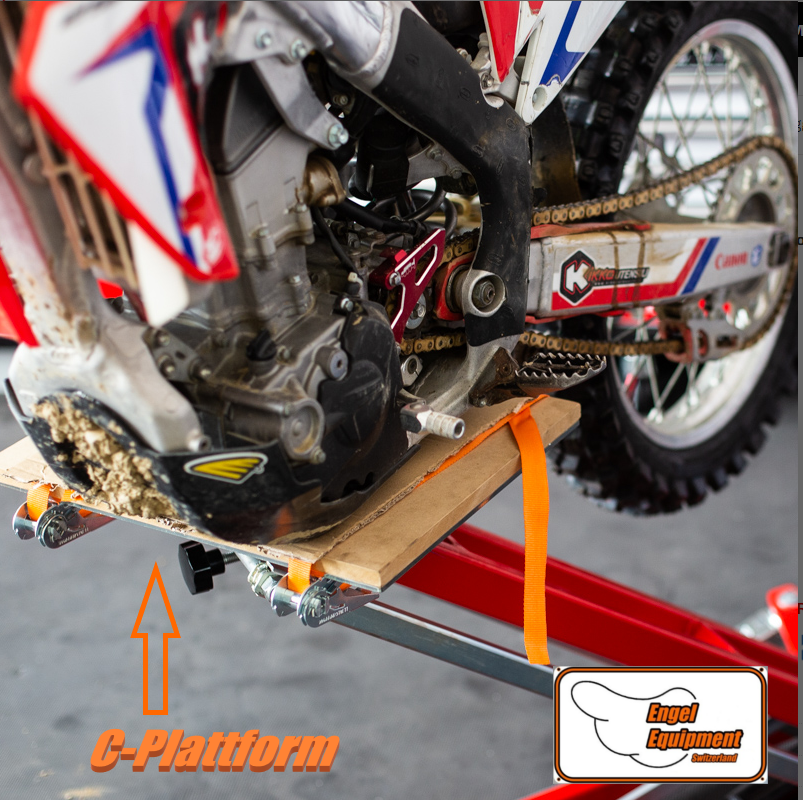 Steckplattform für Engellift Heber UL-500 -& UL-350, für Dirt bikes, Cross motoren, -& Super Motard Plattform ist 360° Rotierbar, und belegt mit ein Holzschutz, und mit 2x Spanngurt.
