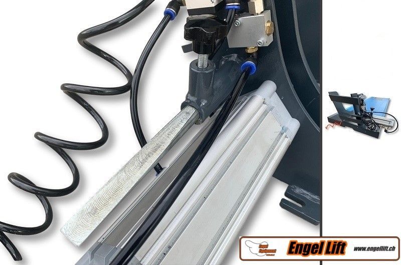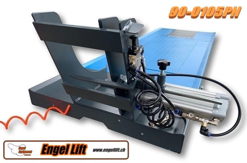 Diese neu entwickleter Vollautmatische Pneumatische Radklemme, kann auf jeder Hebebühne nachgerüstetet werden, auch lieferbar mit Schnellwechsel schienen system verfügbar. (auf Anfrage)