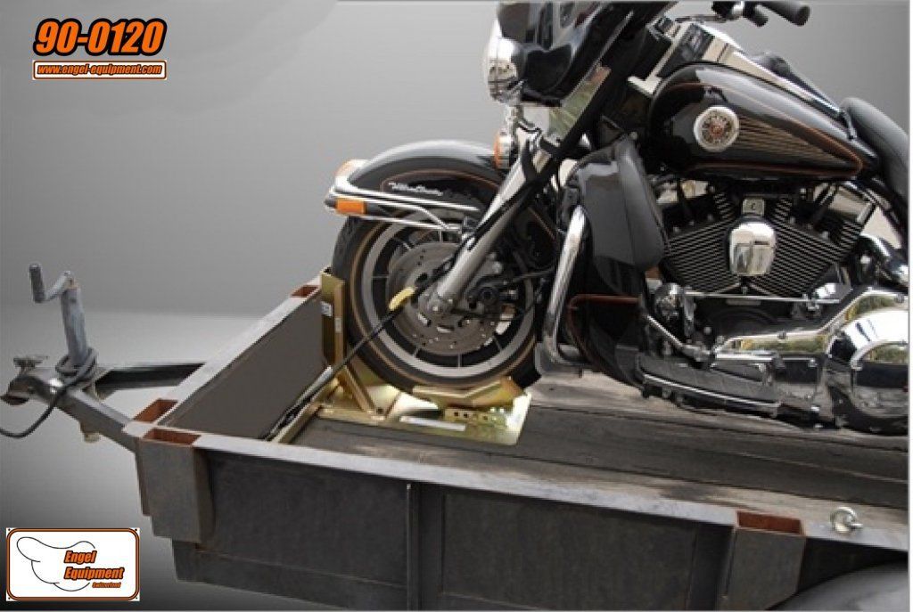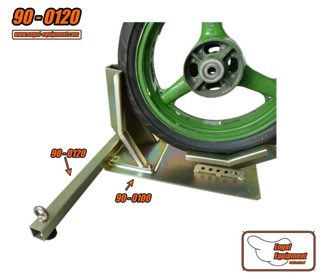 Kipp Radhalterung die sich automatisch auslöst bei einfahren von ein Motorrad vorder oder hinterradund spannt das Rad direkt auf, dass Motorrad hat ein sichere und feste Stand durch diese vorgang, Rasch einsetzbar oder abnehmbar mittels Schnellwechsel schiene system, auch Mobil einsetzbar in Zusammenarbeit mit 90-0120 Transporttraverse für Töff Transporten in ein Bus, Lieferwagen oder auf ein Anhänger, so zu sagen für alle. !.